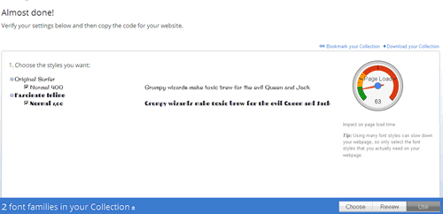 Una vez todas las fuentes deseadas han sido elegidas, se puede hacer clic en «Use», en los botones de la barra inferior y cambia la pantalla a las opciones finales de configuración. Una de las cosas que no ví a primera vista (llamadme poco observador) fue que esta página tiene scroll hacia abajo y eso me confundió un poco.